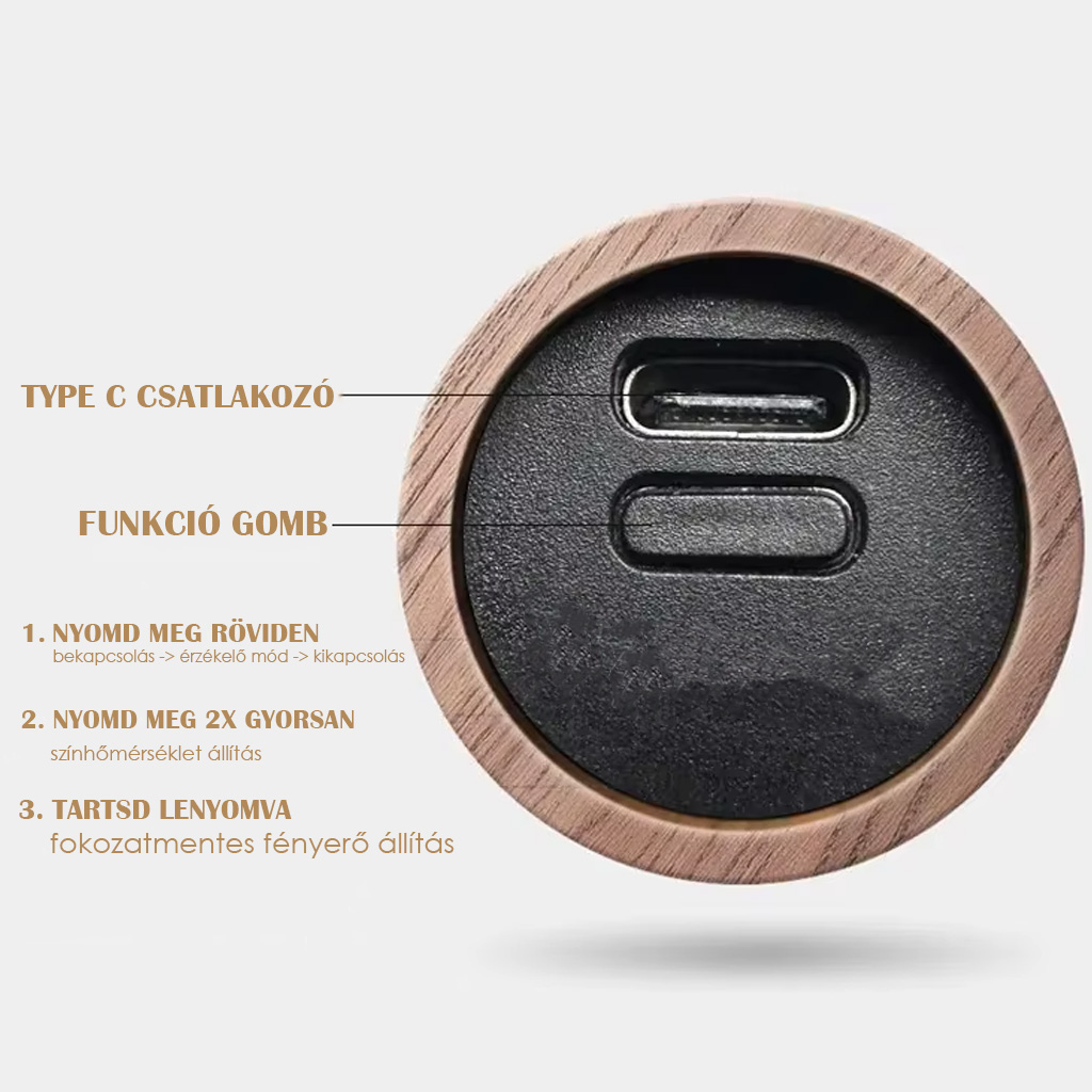 A gomb hosszan tartó lenyomásával beállíthatod a lámpa fényerejét. A világítás fokozatosan változik, így pontosan az igényeidhez igazíthatod a fényerőt, legyen szó halvány éjjeli világításról vagy erősebb fényről.